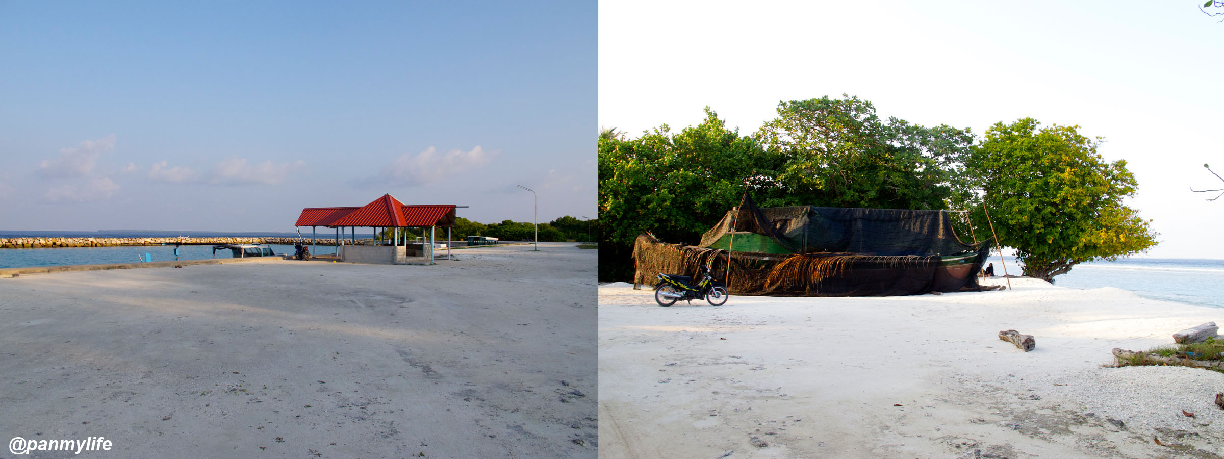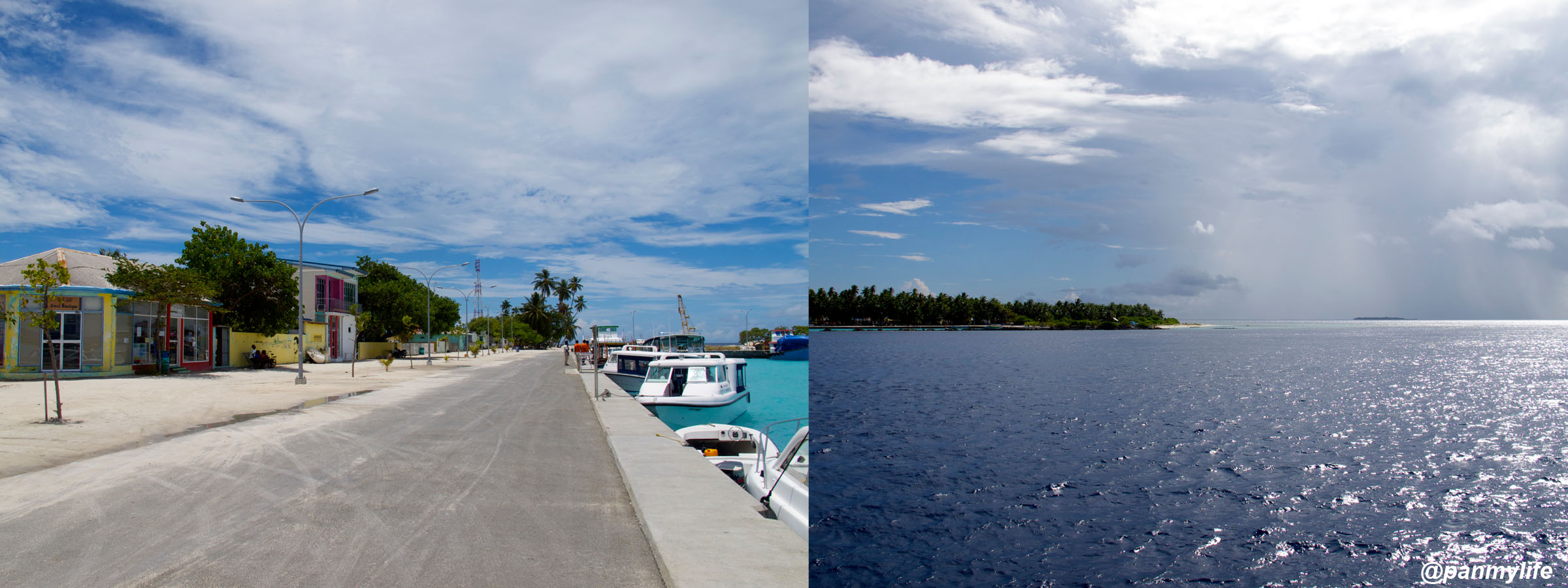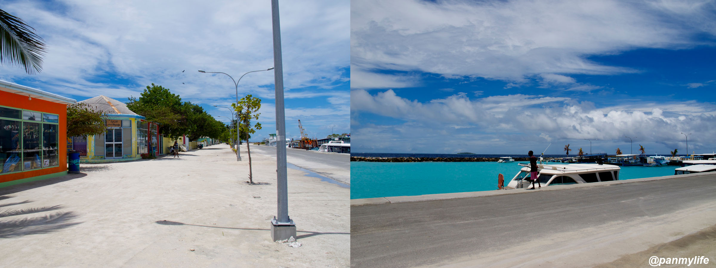 It was a short flight and it wasn’t difficult for the staff to find me. I guess the usual single female asian diver gave me away pretty easily. Dharavandhoo island was a quiet little island and there were hardly anyone on the streets. And it was really quiet. This was the scene along the beach in the village where we were walking to the dock.