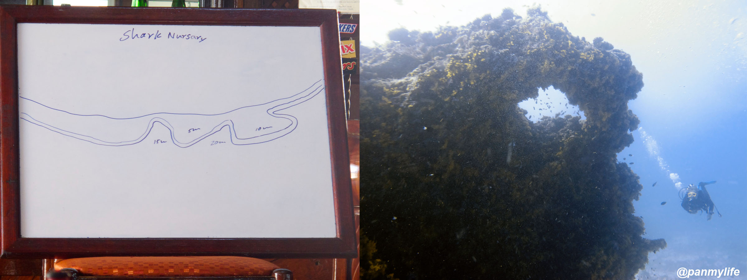 Our last dive of the day was at shark nursery and there was supposedly a ‘houseshark’ but I guessed he wasn’t home that day. 🙁 But again, some very interesting reef formations thats I really enjoyed. The current up north was definitely stronger than what I had experienced the week before. We were very much sheltered when we were along the reefs and we were hiding out quite a bit. But there were sandy patches that we had to cross that were really opened and we were facing the currents head on. It was work out time.