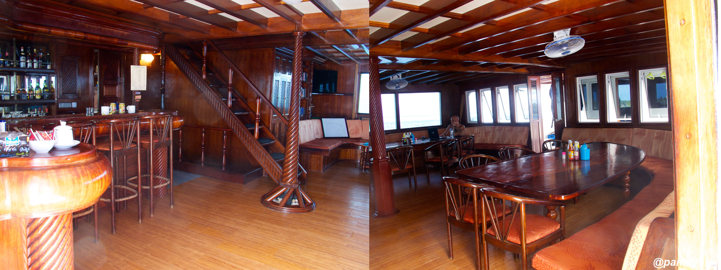 And finally, Amba was in sight. And yes, it was a pretty sight. Much bigger boat and really well decked out. The bar and dining area looked fantastic. We had a short briefing and one little cool thing that I really liked was the pouch of shells. definitely many steps back in time where we will pay for everything using shells instead of cash. That was pretty cool.