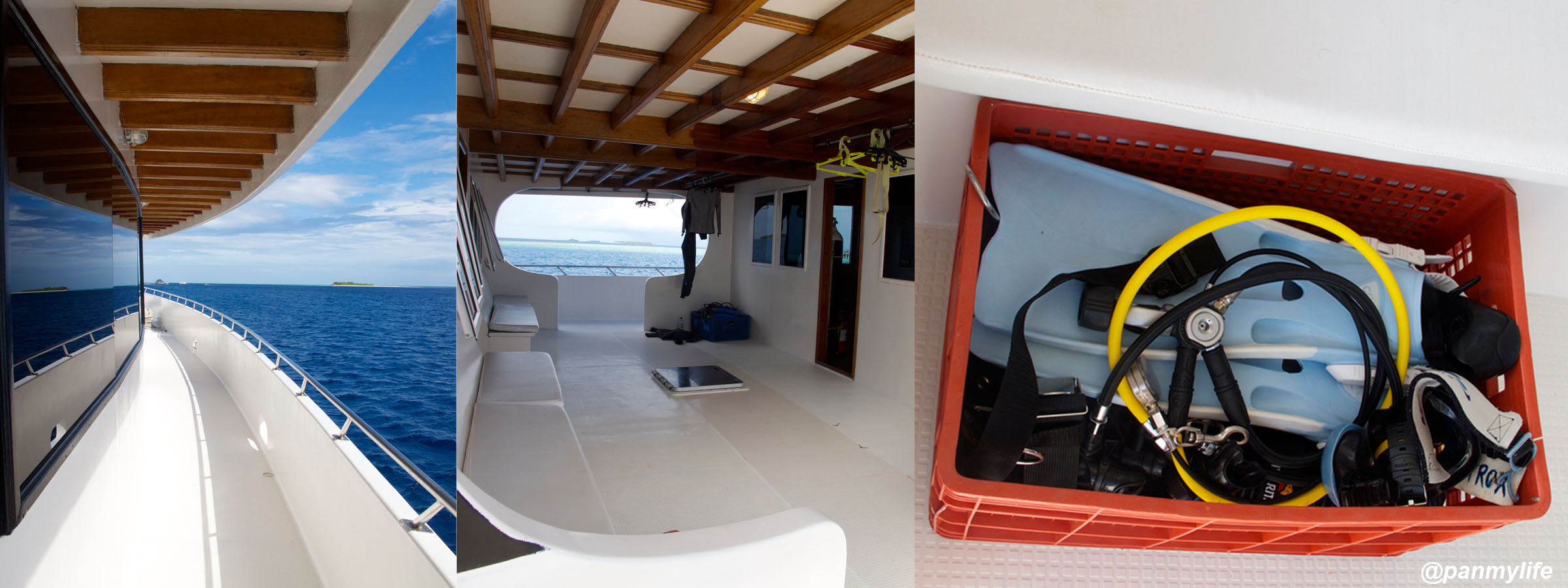 And after getting my luggage in to the room, it was time to get the gears ready again. I was eager to get my wetsuit out as they were still damp when I packed them in. A little damp stench when I pulled it out. They had a nice area at the front just outside the bow of the boat where we could hang stuff out to dry. Captain of Amba knows Captain of Amphibiya and apparently they had had a phone conversation before I got on. So nice to know someone on the boat right away.