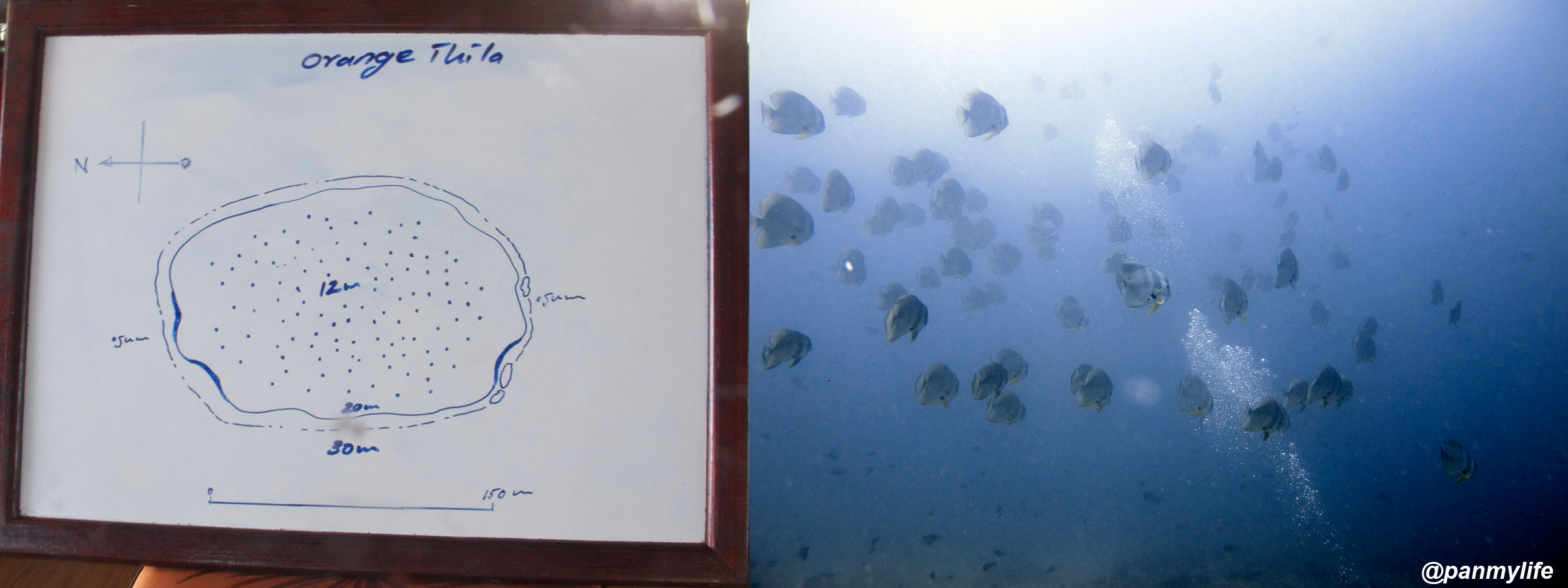 Orange Thila was to be the highlight of my trip. 😉 Definitely a beautiful dive site not to be missed. We descended into a school of batfish and this was the first time I had seen so many of them. Not sure if it was a good or bad thing but they were totally oblivious to us. They came pretty close to check us out.