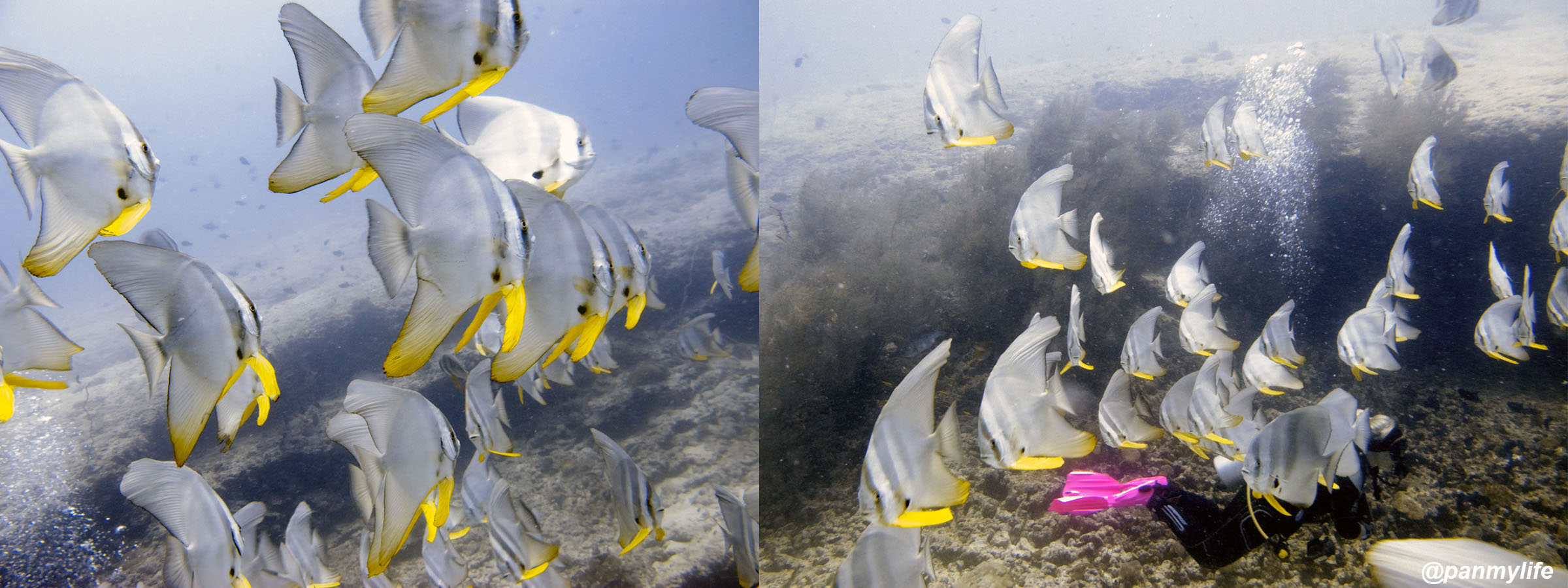 At the end of our first morning dive, these 2 beauties kept following me. They looked pretty lost with no host to attached to. Or was I really that filthy they wanted to clean me up?