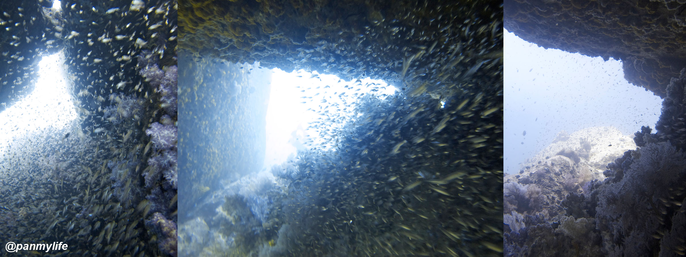 Hmmm the end of our first diving day was marked by this amazing swim through. Did I swim in the fishes or did they kind of rush past me? Such a pretty sight.
