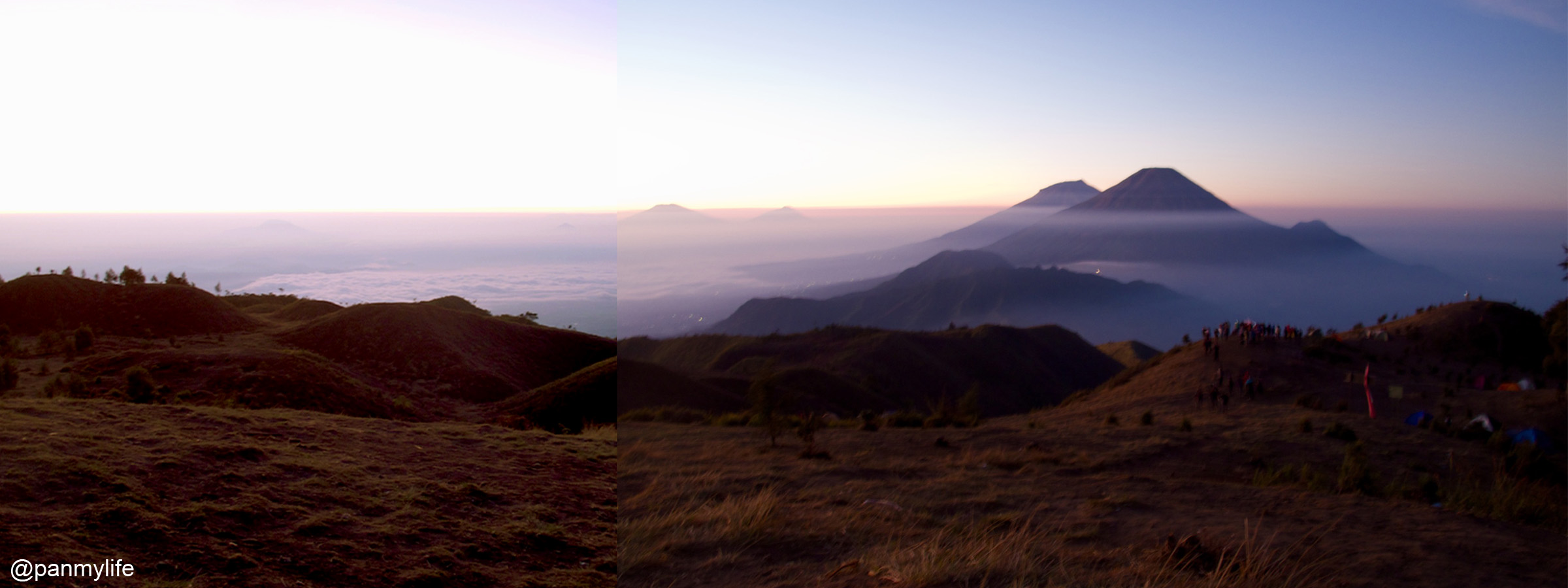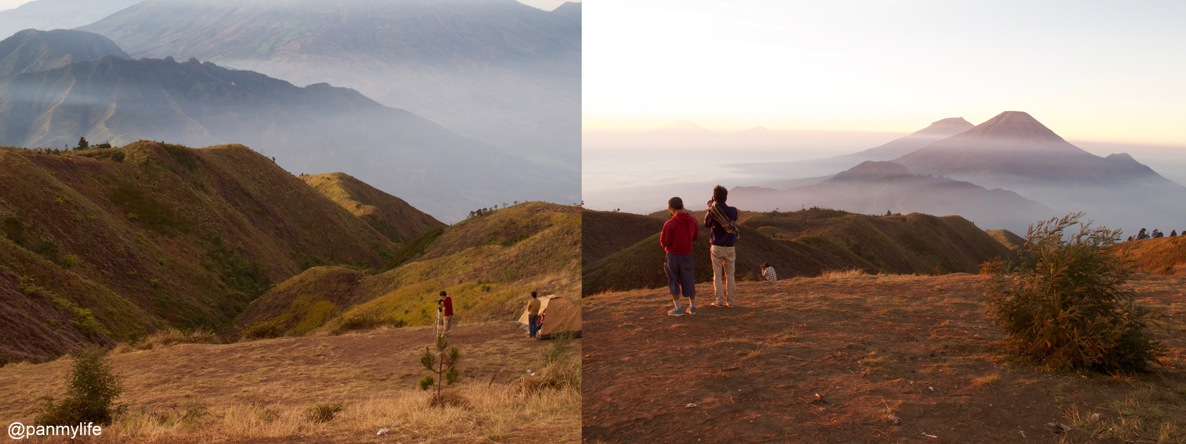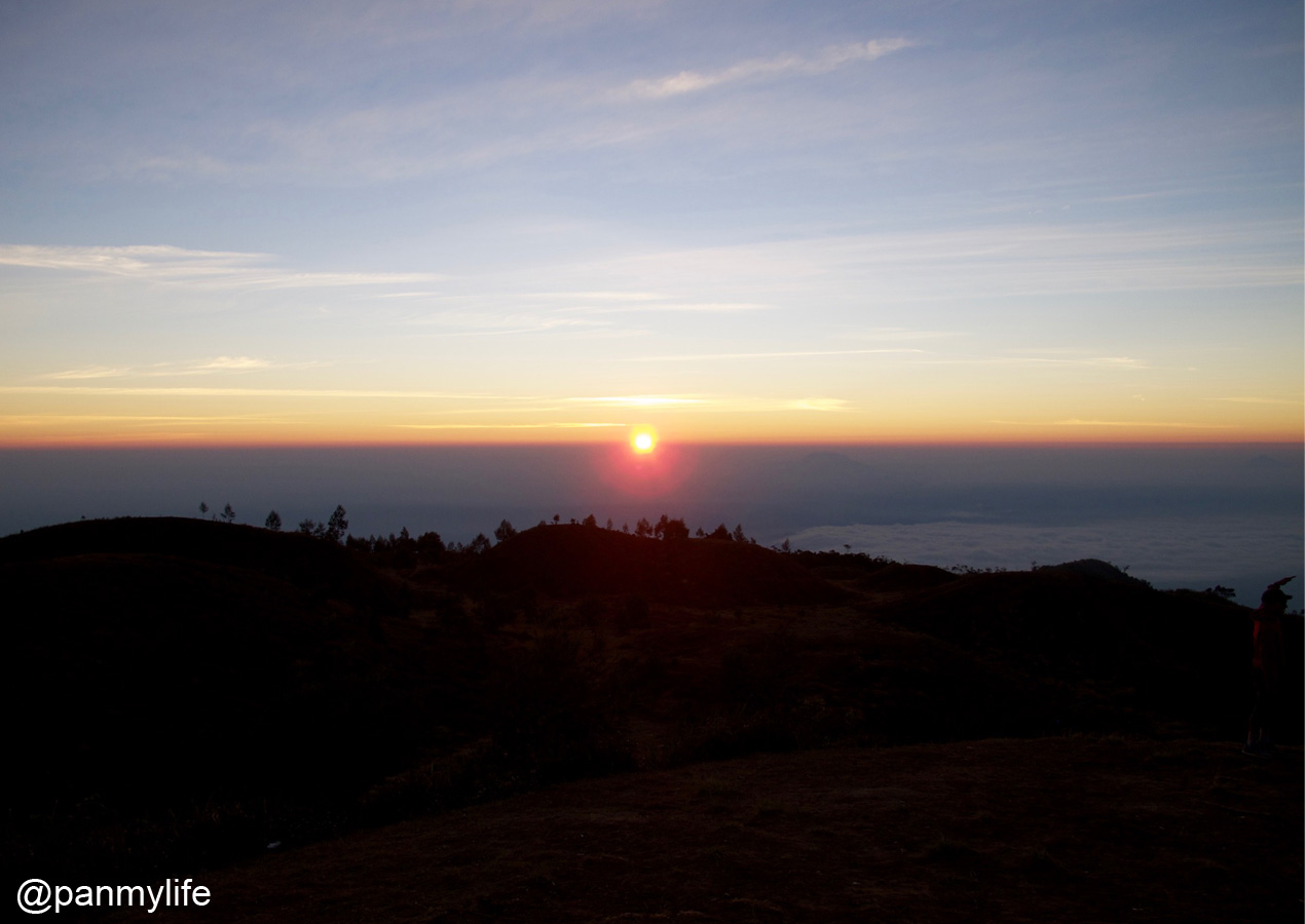 It was surprisingly crowded but we were pretty early, so we wondered around the mountain area a little while waiting for the sun to rise. In the distance is Gunung Mindoro and Gunung Sumbing. I remembered that there was a love story behind the legend of these 2 mountains. All along the way, I had been very disturbed that the 2 mountains were separated but looking at them now, they looked like they were still a pair and somehow, I felt better. As usual, I kept bugging Daniel and Dani along the way and now it seem that the 2 mountains are now on our trekking list. By the way this entry is again late and after these months, I surprised myself that I could still remember their names.