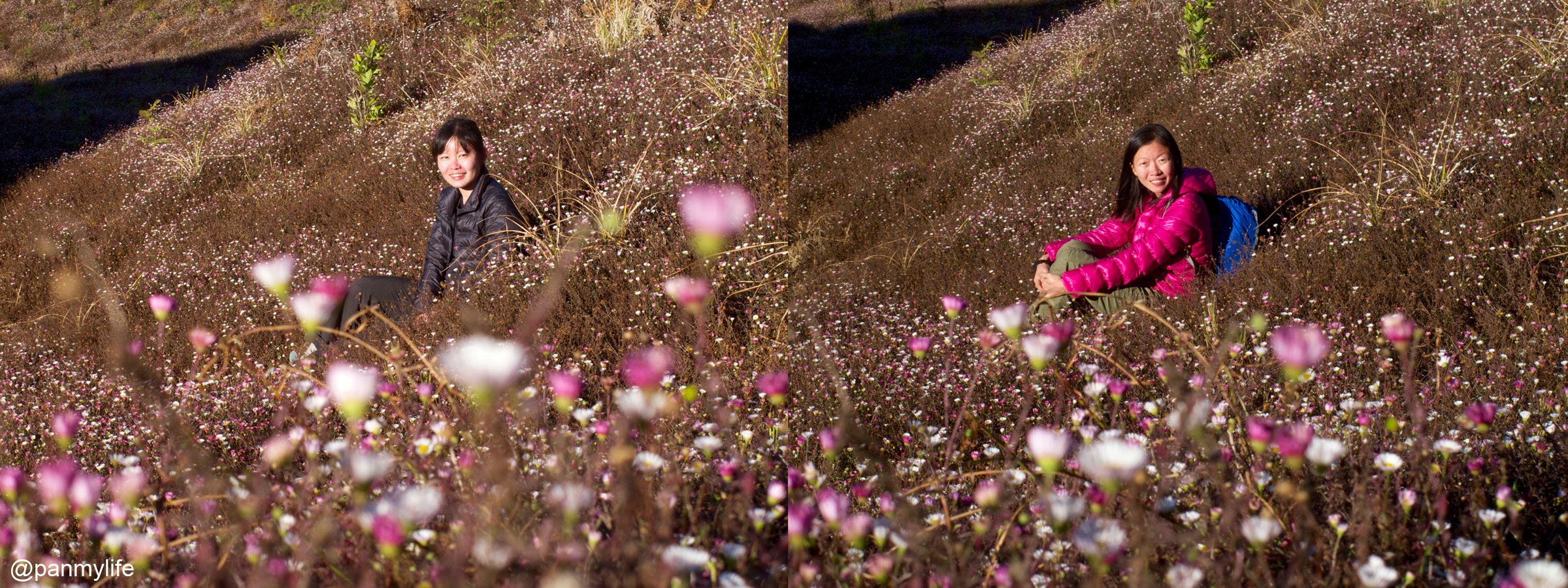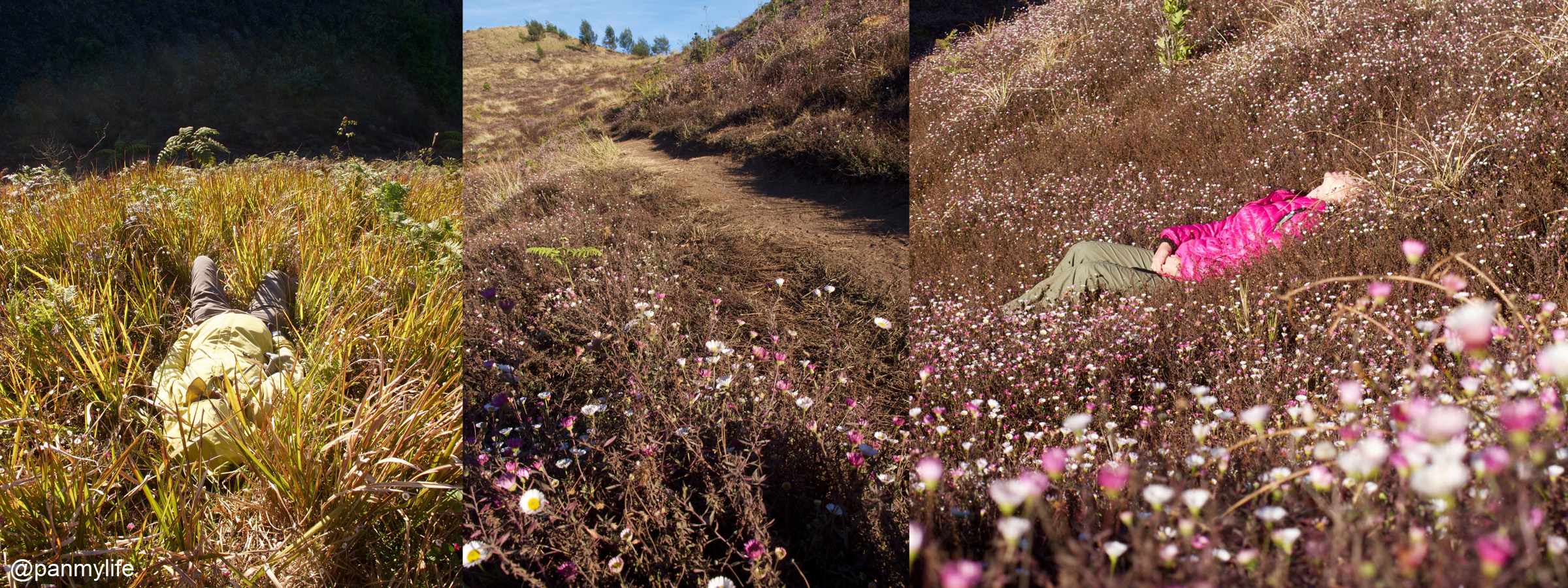 If wild grass were meant to be rolled in, pretty flowers were definitely a bed to sleep in. We just could not resist flattening them…. :p oops.